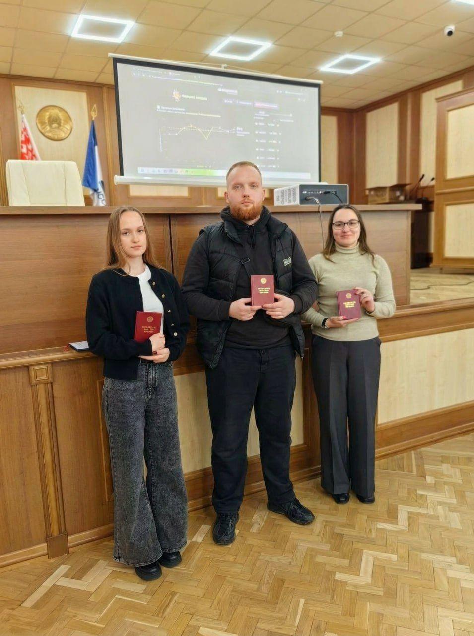 По окончании диалоговой площадки в ряды первичной организации БРСМ учреждения «БЕЛТРАНССПЕЦАВТО» вступили трое молодых работников. В качестве подарка им были вручены Конституции Республики Беларусь.