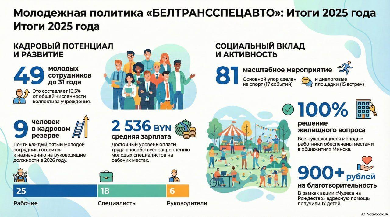В автотранспортном государственном учреждении «БЕЛТРАНССПЕЦАВТО» прошло совещание, в ходе которого были подведены итоги работы с молодёжью за 2025 год.