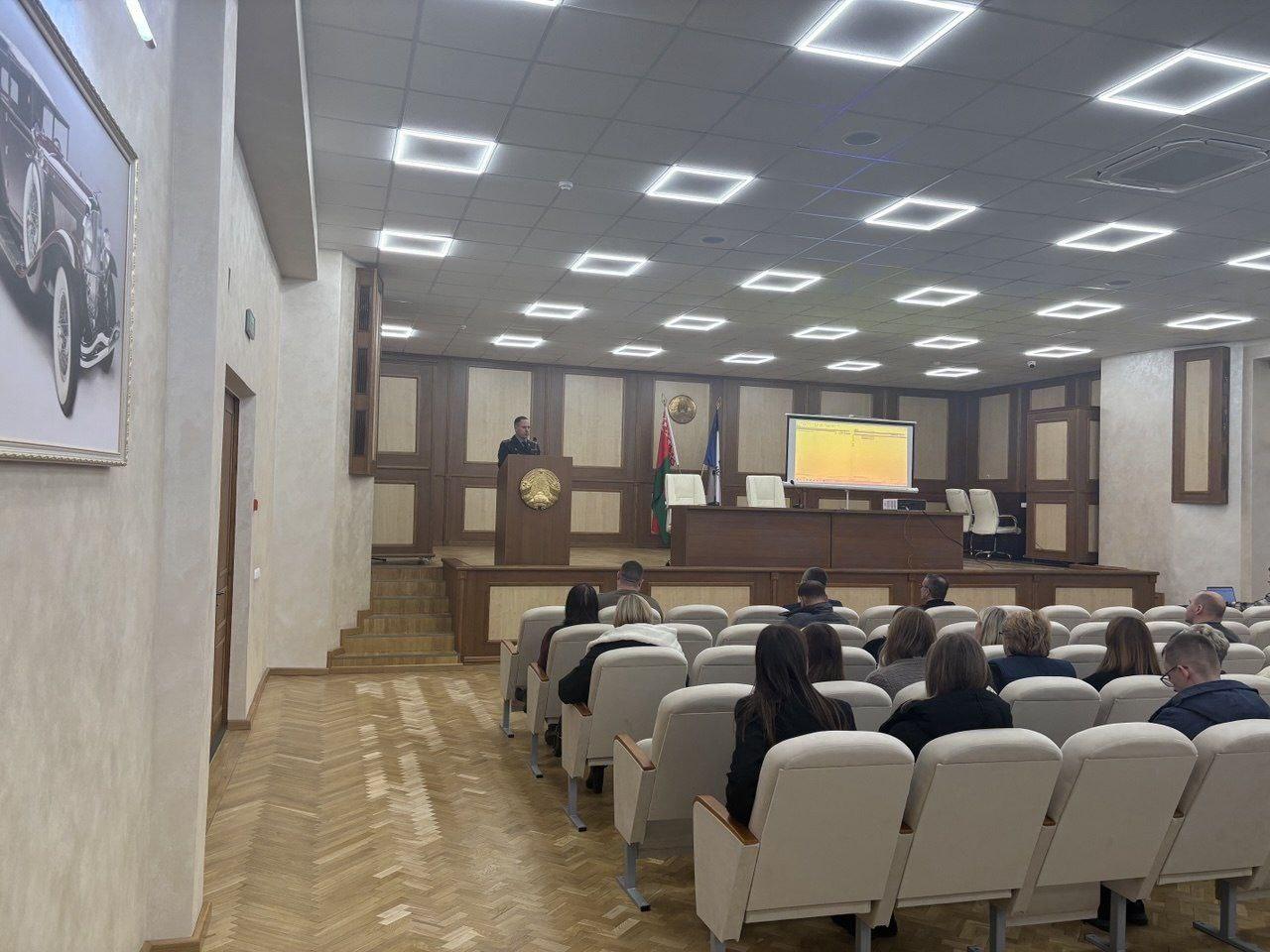 23 декабря актовом зале учреждения прошла встреча заместителя начальника УОПП ГУВД Мингорисполкома Байдуна Александра Александровича с трудовым коллективом. В ходе встречи была доведена информация о важности профилактической работы в сфере борьбы с экстремизмом и противодействию мошенничеству в информационном пространстве. Также наш гость ответил на многочисленные вопросы от коллектива.