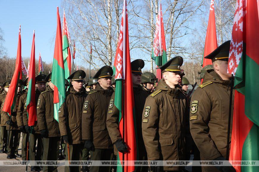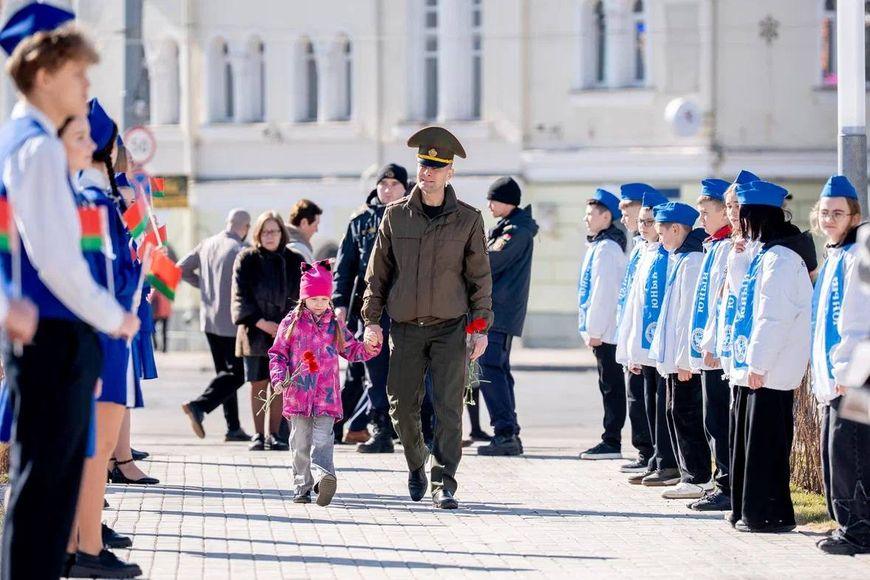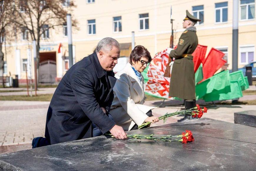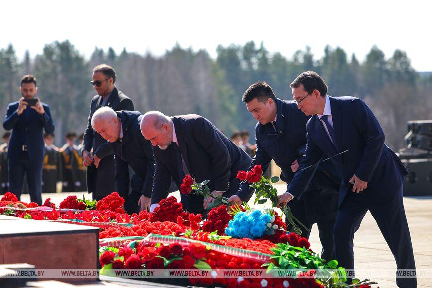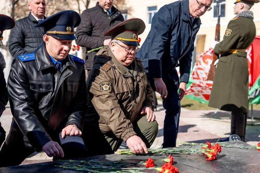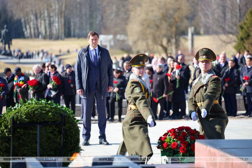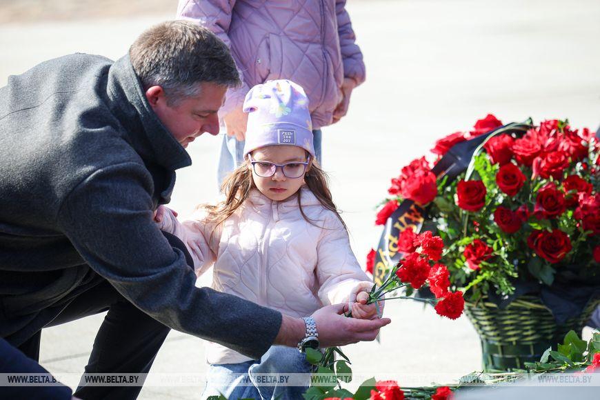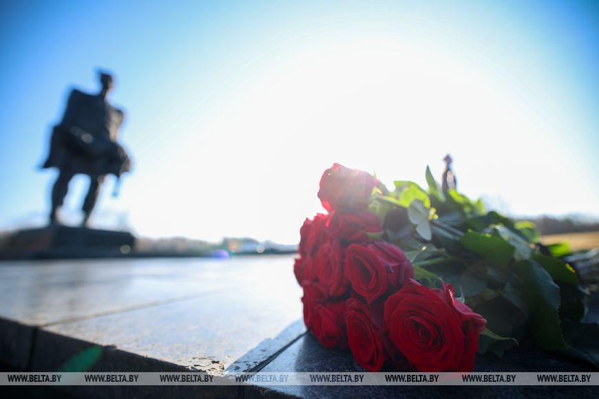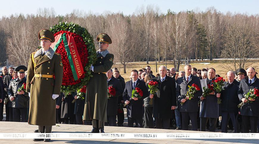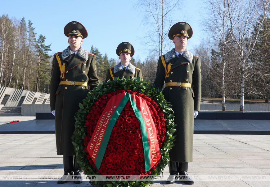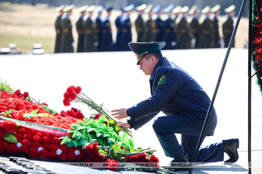 Первым к Вечному огню возложили венок от Президента Беларуси Александра Лукашенко.