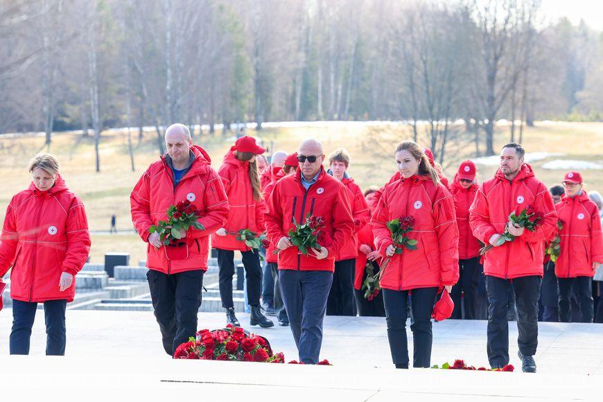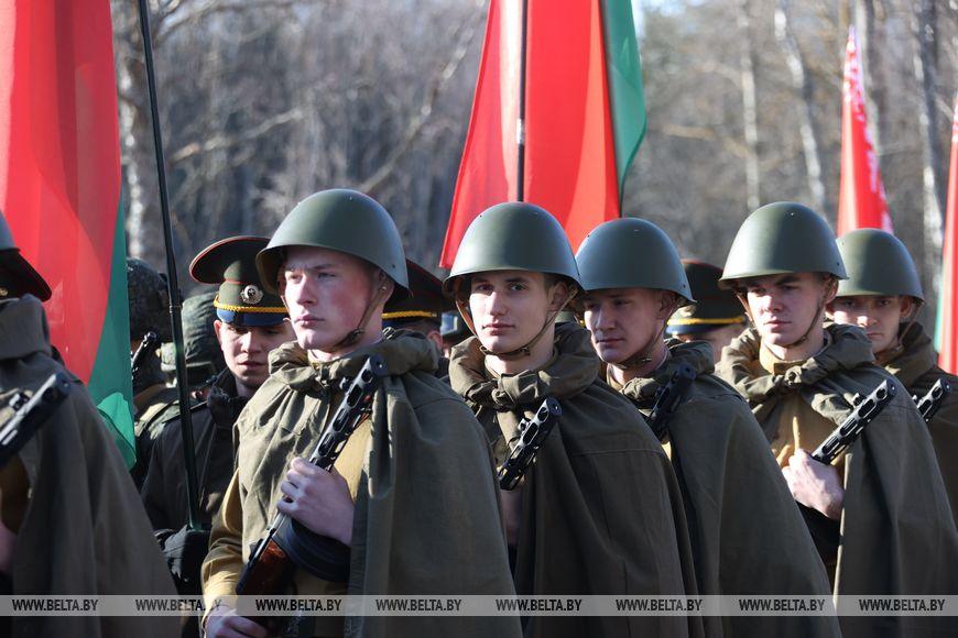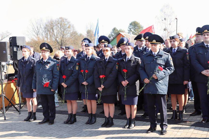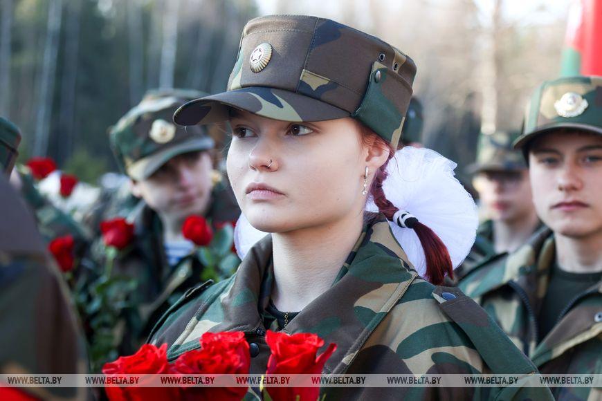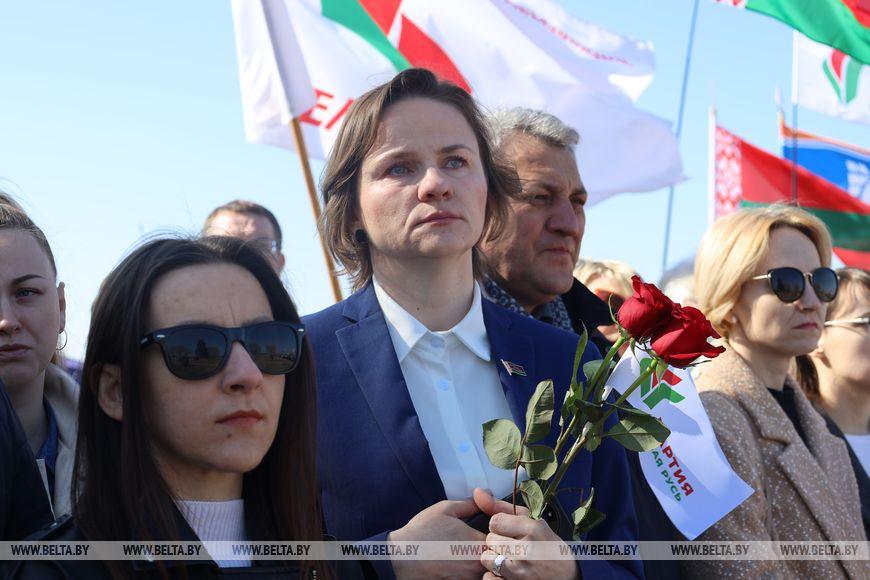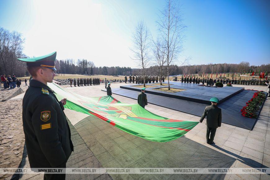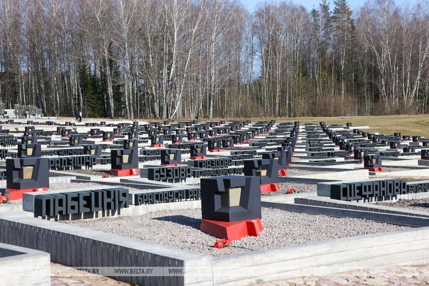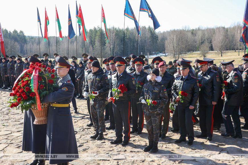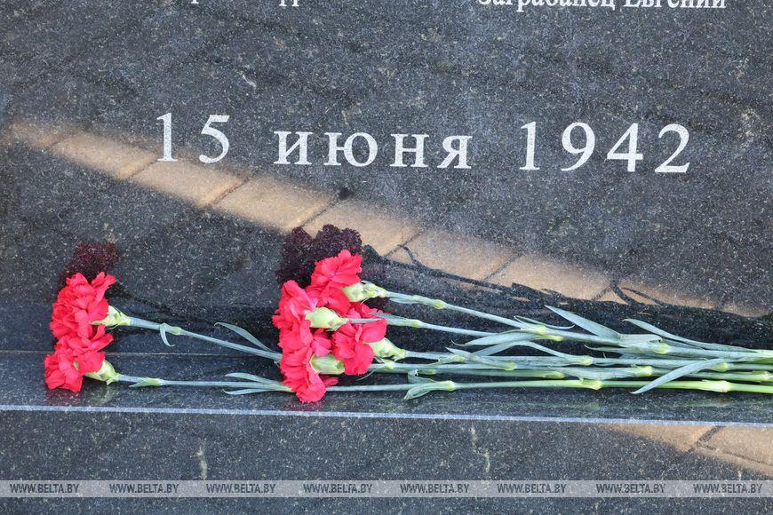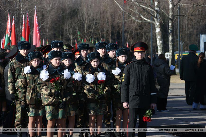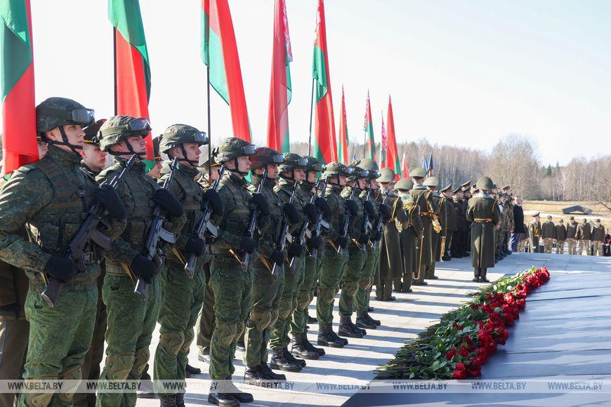 Цветы и цветочные корзины как символ глубокого уважения погибшим хатынцам и всем жертвам войны к фигуре Непокренного человека, братской могиле, в которой упокоен прах сожженных жителей деревни, и к Вечному огню возложили высшие должностные лица, руководители министерств и ведомств, возглавившие свои делегации, представители общественных объединений и организаций, молодежь, школьники, силовики, к которым присоединились воспитанники военно-патриотических клубов.