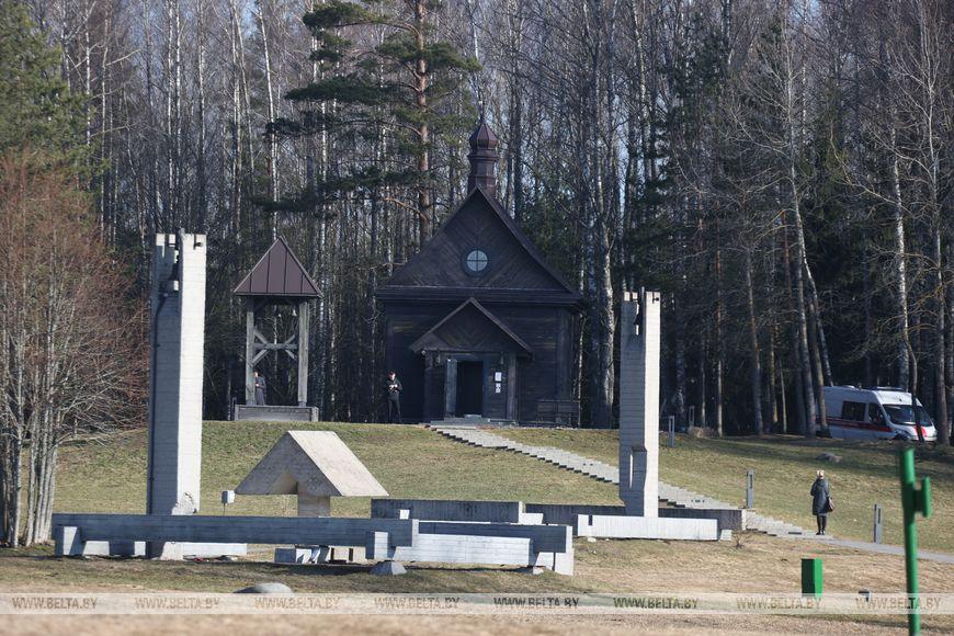 Сегодня целый день открыта церковь Рождества Пресвятой Богородицы в Хатыни: возложив цветы, посетители комплекса могут зайти в храм и поставить свечу памяти.-0-
