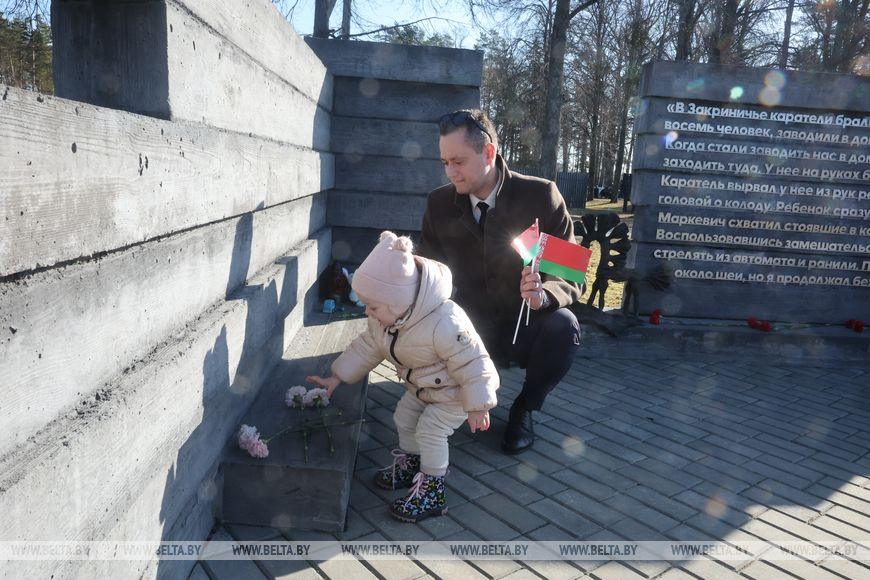 22 марта, Логойский район /Корр. БЕЛТА/. В мемориальном комплексе «Хатынь» было особенно многолюдно: белорусы и гости страны присоединились к акции «Приди и поклонись», посвященной 83-й годовщине страшной трагедии сожженной фашистами вместе с 149 жителями деревни, ставшей символом скорби и непокоренности народа, передает корреспондент БЕЛТА.